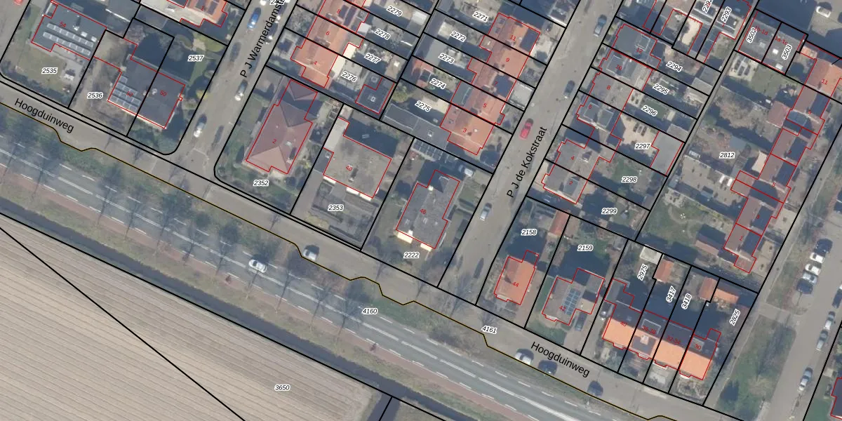 Het perceel waarop Hoogduinweg 46 staat heeft een oppervlakte van 605 m². Dit is een groot perceel. De perceeloppervlakte wordt geregistreerd door het Kadaster. Gedetailleerde informatie over de maten van dit perceel kunt u vinden in het rapport Kadastrale kaart met maatvoering van Hoogduinweg 46.