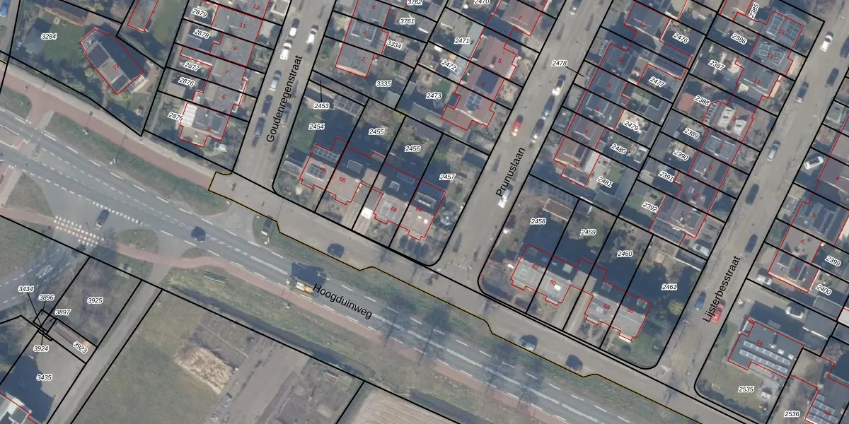 Hoogduinweg 64 is gelegen op kadastraal perceel NWK04A2457. Deze kadastrale aanduiding is uniek en wordt gebruikt door het Kadaster om eigendomsrechten en andere zakelijke rechten vast te leggen. Het perceel maakt onderdeel uit van de kadastrale gemeente Noordwijkerhout.