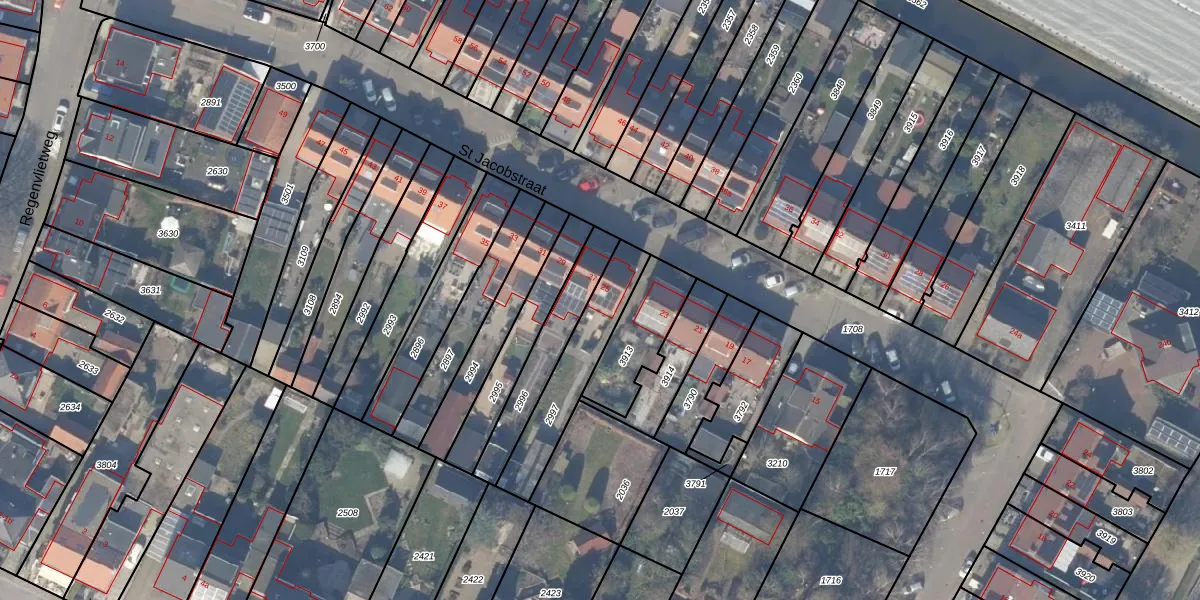 Het perceel waarop St Jacobstraat 25 staat heeft een oppervlakte van 282 m². Dit is een middelgroot perceel. De perceeloppervlakte wordt geregistreerd door het Kadaster. Gedetailleerde informatie over de maten van dit perceel kunt u vinden in het rapport Kadastrale kaart met maatvoering van St Jacobstraat 25.