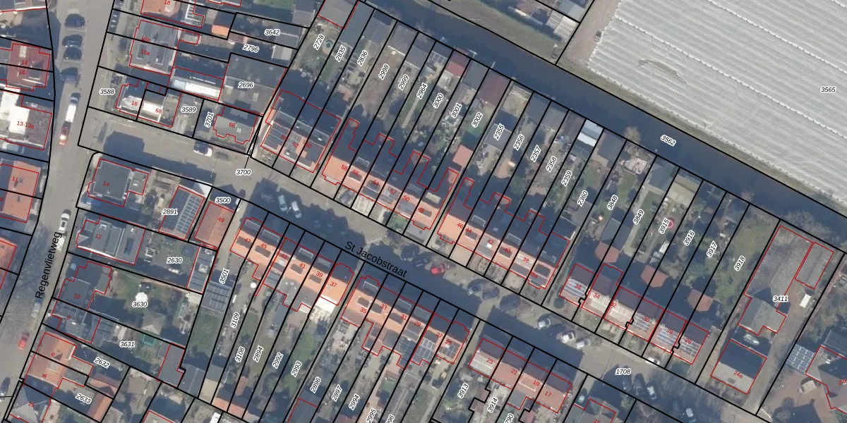 Het perceel waarop St Jacobstraat 48 staat heeft een oppervlakte van 253 m². Dit is een middelgroot perceel. De perceeloppervlakte wordt geregistreerd door het Kadaster. Gedetailleerde informatie over de maten van dit perceel kunt u vinden in het rapport Kadastrale kaart met maatvoering van St Jacobstraat 48.