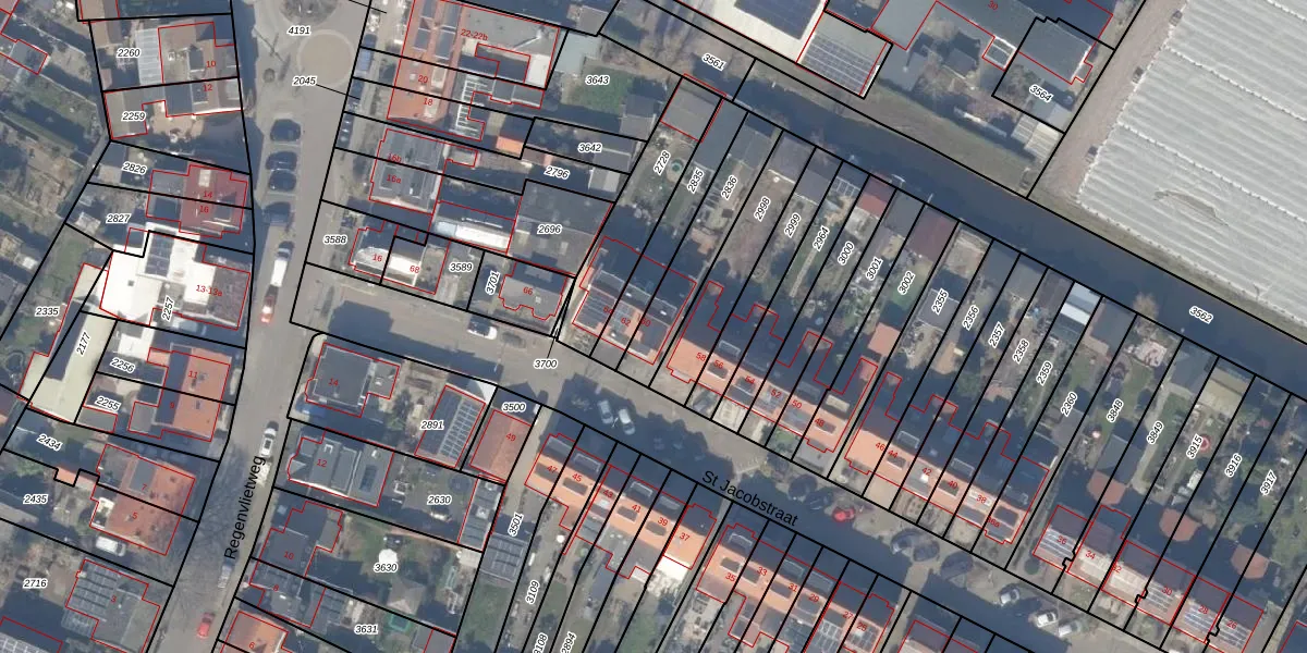 Het perceel waarop St Jacobstraat 60 staat heeft een oppervlakte van 247 m². Dit is een middelgroot perceel. De perceeloppervlakte wordt geregistreerd door het Kadaster. Gedetailleerde informatie over de maten van dit perceel kunt u vinden in het rapport Kadastrale kaart met maatvoering van St Jacobstraat 60.