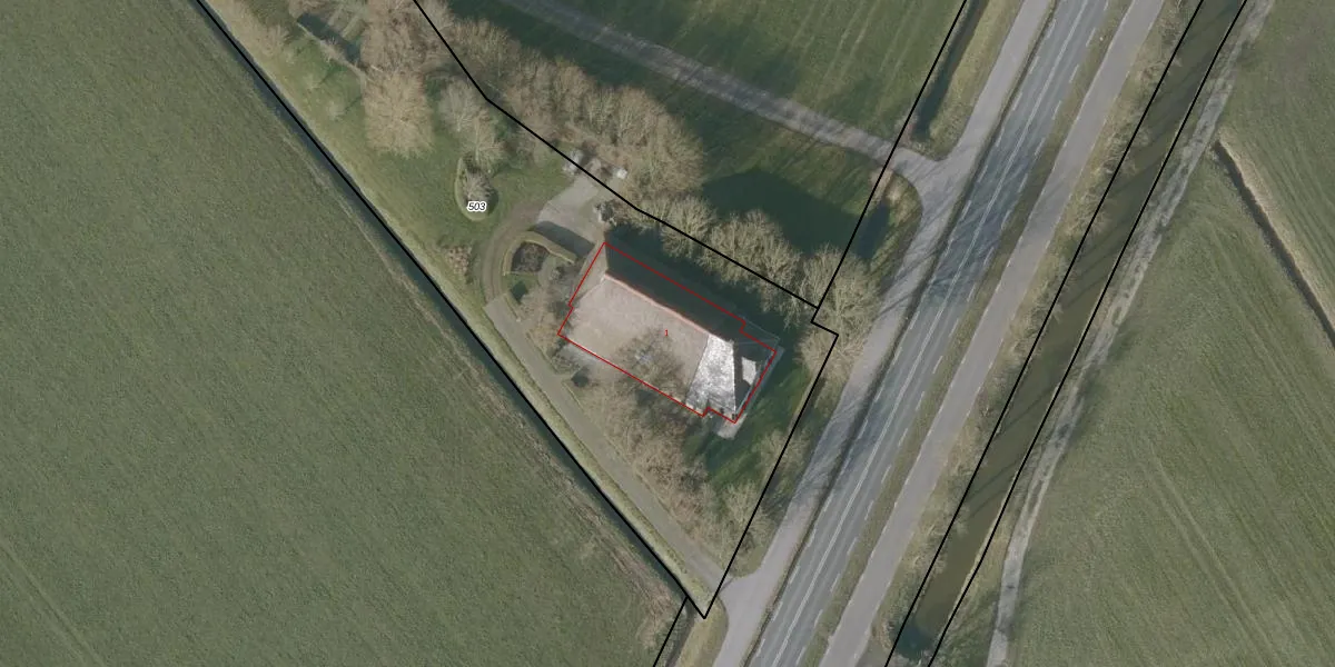 Het adres is gelegen op perceel 503 in de sectie H en de kadastrale gemeente Rauwerd. De kadastrale aanduiding is aldus RWD02-H-503. Het perceel is kleiner dan gemiddeld in Rauwerd. Het perceel is 4085 m² groot, terwijl het gemiddelde ligt op 9921,36 m². De grootste perceeloppervlakte in de kadastrale gemeente is 18,9 ha. De kleinste oppervlakte bedraagt 1 m². Op het perceel bevinden zich geen andere adressen. De huidige grenzen van het perceel zijn digitaal in de Basisregistratie Kadaster (BRK) geregistreerd op 16-04-1998.