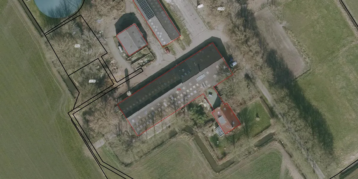 Het perceel waarop nummer 12-b staat heeft een oppervlakte van 2,6 ha. Dit is een zeer groot perceel. De perceeloppervlakte wordt geregistreerd door het Kadaster. Gedetailleerde informatie over de maten van dit perceel kunt u vinden in het rapport Kadastrale kaart met maatvoering van nummer 12-b.