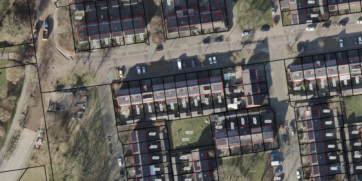 Het perceel waarop Adelaarweg 80 staat heeft een oppervlakte van 159 m². Dit is een middelgroot perceel. De perceeloppervlakte wordt geregistreerd door het Kadaster. Gedetailleerde informatie over de maten van dit perceel kunt u vinden in het rapport Kadastrale kaart met maatvoering van Adelaarweg 80.