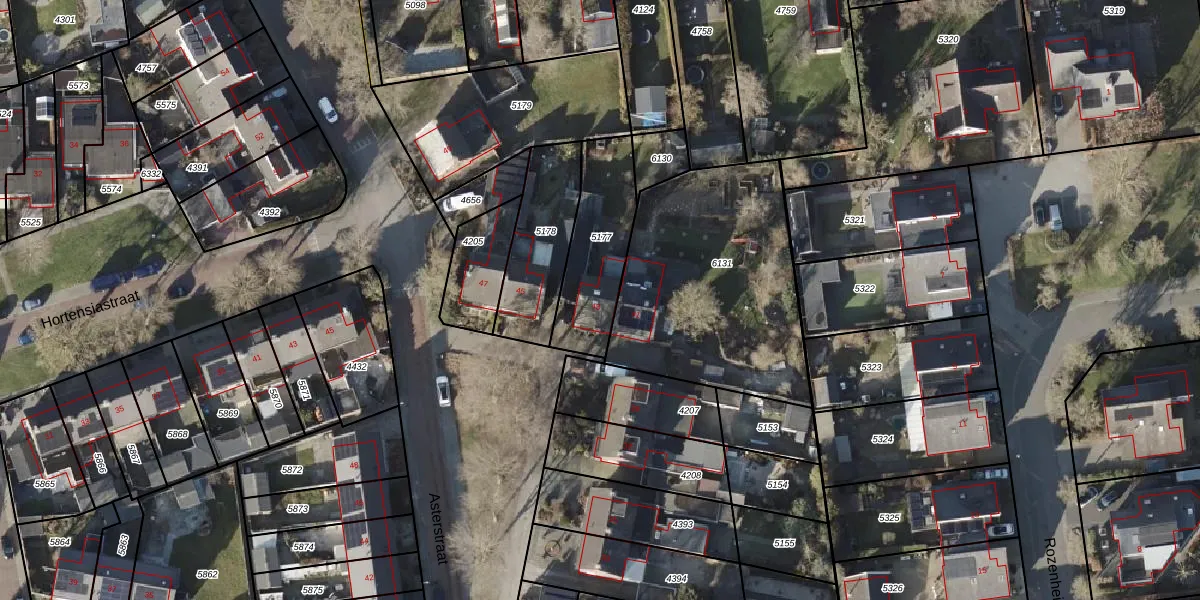 Het perceel waarop Asterstraat 43 staat heeft een oppervlakte van 338 m². Dit is een groot perceel. De perceeloppervlakte wordt geregistreerd door het Kadaster. Gedetailleerde informatie over de maten van dit perceel kunt u vinden in het rapport Kadastrale kaart met maatvoering van Asterstraat 43.