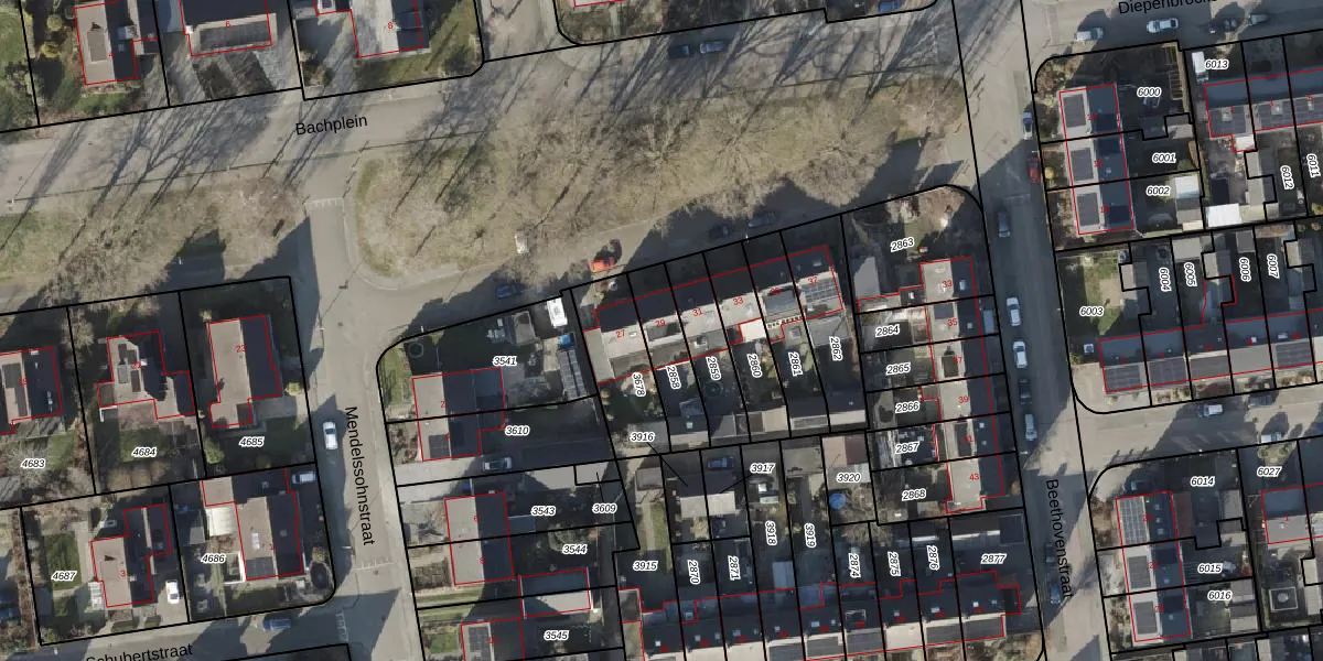 Het perceel waarop Bachplein 29 staat heeft een oppervlakte van 173 m². Dit is een middelgroot perceel. De perceeloppervlakte wordt geregistreerd door het Kadaster. Gedetailleerde informatie over de maten van dit perceel kunt u vinden in het rapport Kadastrale kaart met maatvoering van Bachplein 29.