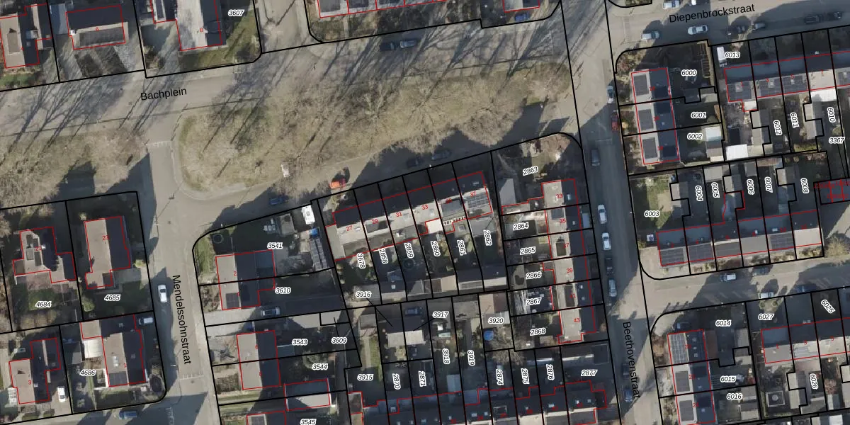 Het perceel waarop Bachplein 33 staat heeft een oppervlakte van 183 m². Dit is een middelgroot perceel. De perceeloppervlakte wordt geregistreerd door het Kadaster. Gedetailleerde informatie over de maten van dit perceel kunt u vinden in het rapport Kadastrale kaart met maatvoering van Bachplein 33.