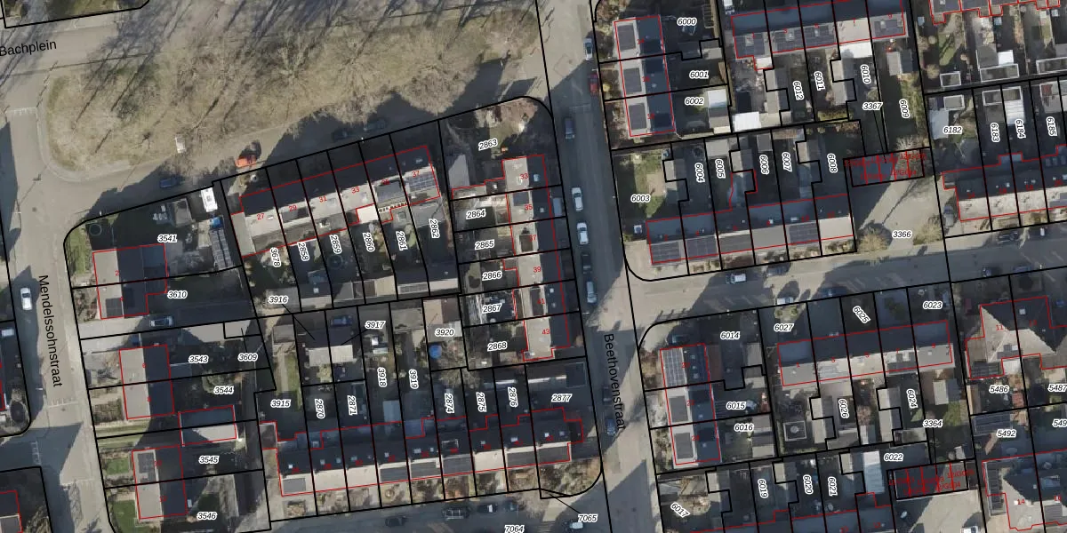Gebruik de zoekbalk of klik op een perceel voor informatie over de adressen binnen dit perceel.