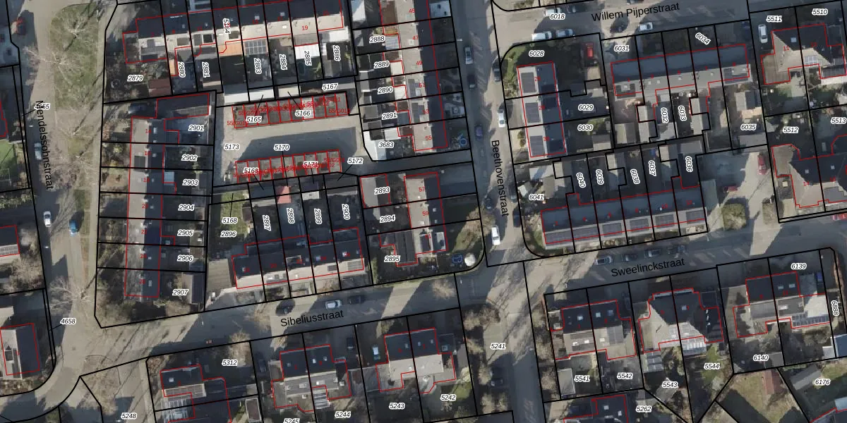 Gebruik de zoekbalk of klik op een perceel voor informatie over de adressen binnen dit perceel.