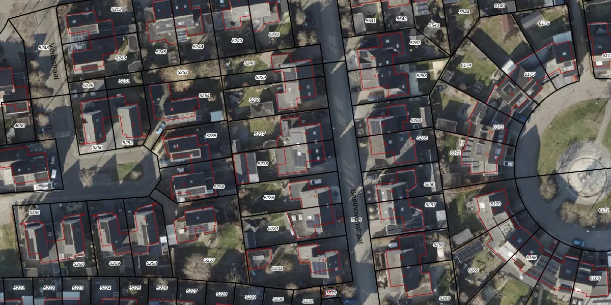 Het perceel waarop Beethovenstraat 69 staat heeft een oppervlakte van 352 m². Dit is een groot perceel. De perceeloppervlakte wordt geregistreerd door het Kadaster. Gedetailleerde informatie over de maten van dit perceel kunt u vinden in het rapport Kadastrale kaart met maatvoering van Beethovenstraat 69.