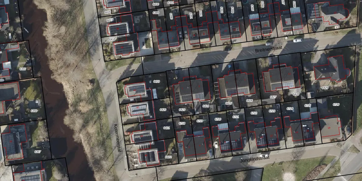 Het perceel waarop Breitnerstraat 1 staat heeft een oppervlakte van 325 m². Dit is een groot perceel. De perceeloppervlakte wordt geregistreerd door het Kadaster. Gedetailleerde informatie over de maten van dit perceel kunt u vinden in het rapport Kadastrale kaart met maatvoering van Breitnerstraat 1.
