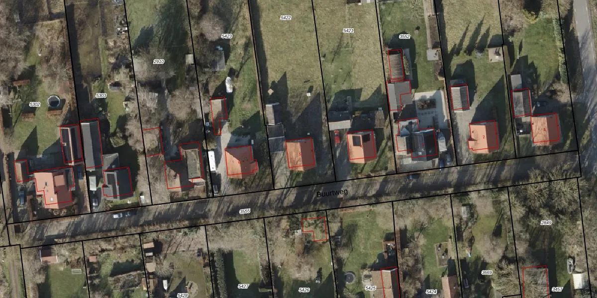 Het perceel waarop Buurtweg 5 staat heeft een oppervlakte van 1945 m². Dit is een zeer groot perceel. De perceeloppervlakte wordt geregistreerd door het Kadaster. Gedetailleerde informatie over de maten van dit perceel kunt u vinden in het rapport Kadastrale kaart met maatvoering van Buurtweg 5.
