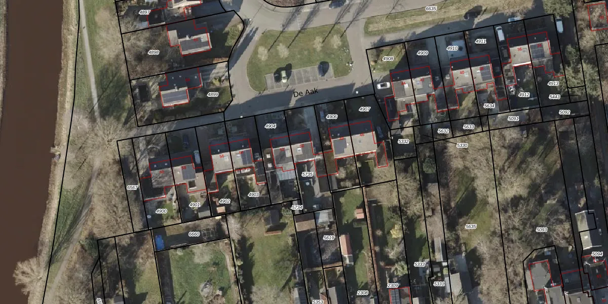 Het perceel waarop De Aak 50 staat heeft een oppervlakte van 348 m². Dit is een groot perceel. De perceeloppervlakte wordt geregistreerd door het Kadaster. Gedetailleerde informatie over de maten van dit perceel kunt u vinden in het rapport Kadastrale kaart met maatvoering van De Aak 50.