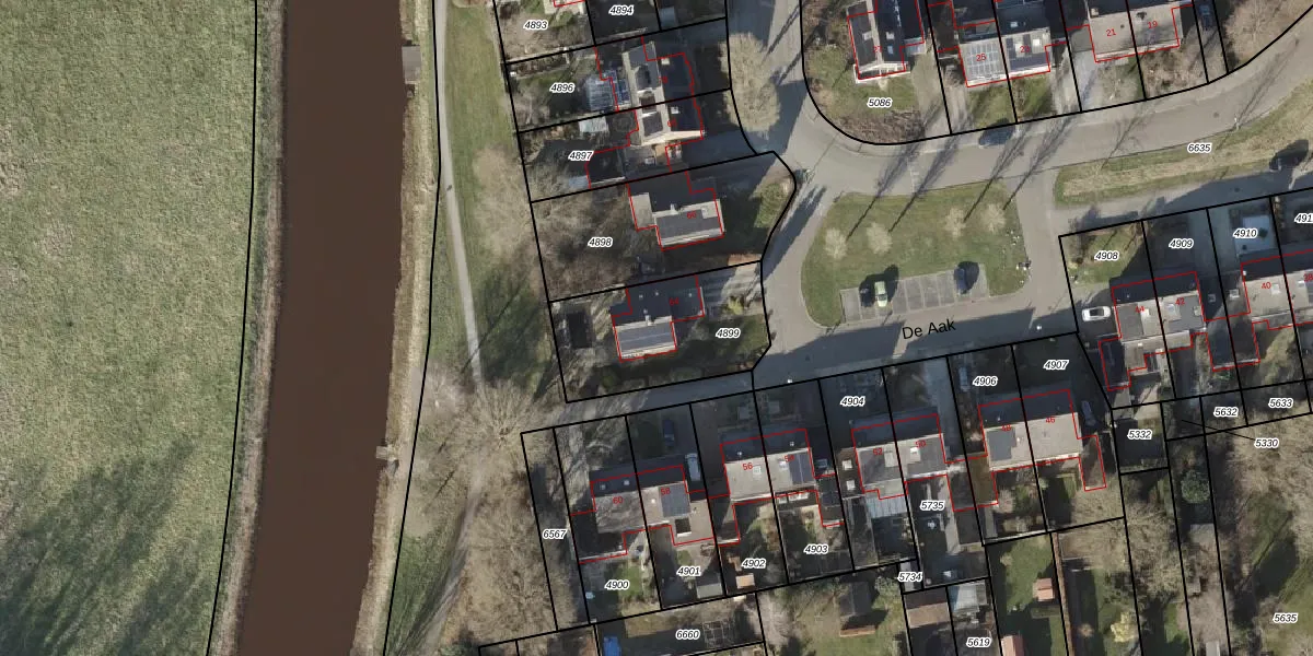 Het perceel waarop De Aak 64 staat heeft een oppervlakte van 508 m². Dit is een groot perceel. De perceeloppervlakte wordt geregistreerd door het Kadaster. Gedetailleerde informatie over de maten van dit perceel kunt u vinden in het rapport Kadastrale kaart met maatvoering van De Aak 64.