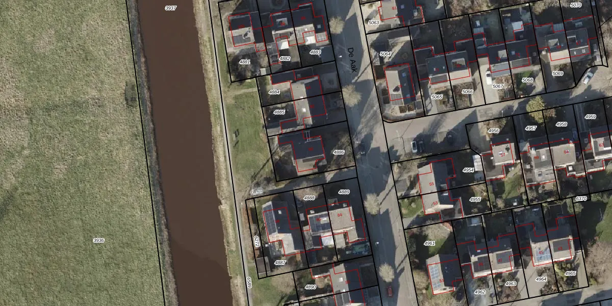 Het perceel waarop De Aak 90 staat heeft een oppervlakte van 402 m². Dit is een groot perceel. De perceeloppervlakte wordt geregistreerd door het Kadaster. Gedetailleerde informatie over de maten van dit perceel kunt u vinden in het rapport Kadastrale kaart met maatvoering van De Aak 90.