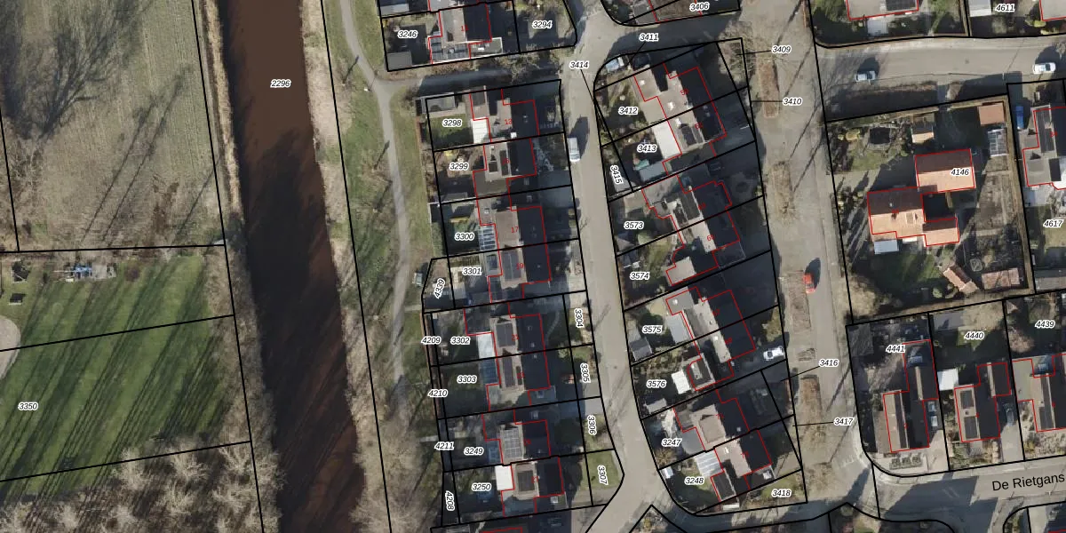 Gebruik de zoekbalk of klik op een perceel voor informatie over de adressen binnen dit perceel.