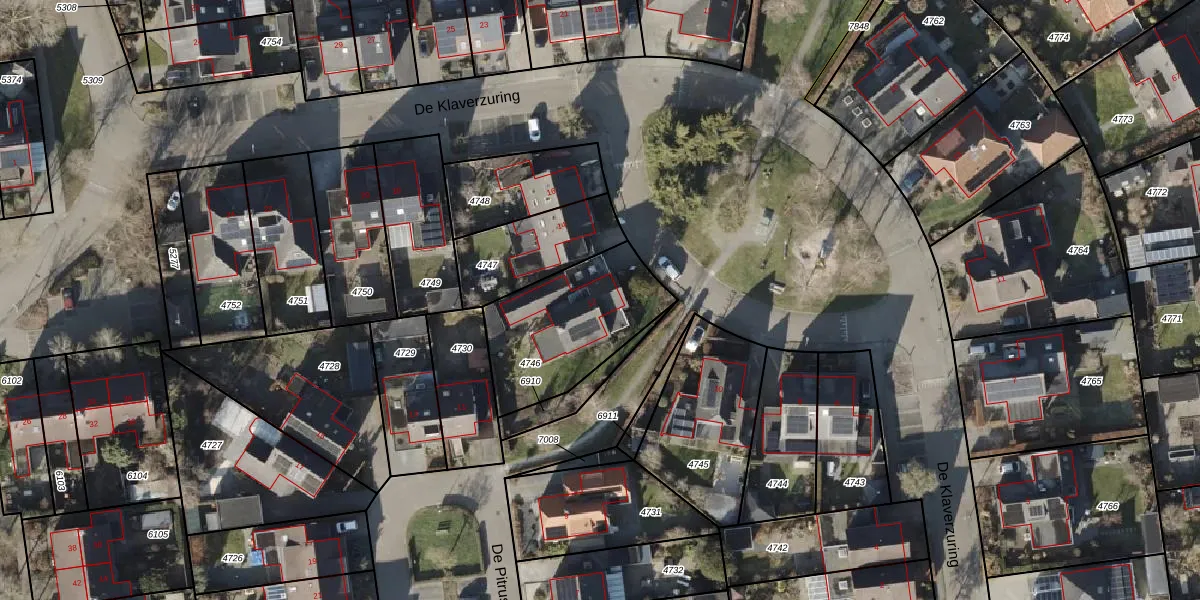 Het perceel waarop De Klaverzuring 12 staat heeft een oppervlakte van 515 m². Dit is een groot perceel. De perceeloppervlakte wordt geregistreerd door het Kadaster. Gedetailleerde informatie over de maten van dit perceel kunt u vinden in het rapport Kadastrale kaart met maatvoering van De Klaverzuring 12.