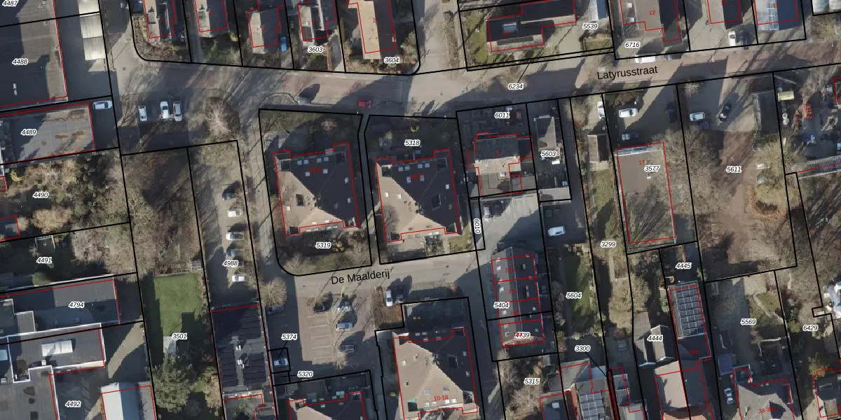 Het perceel waarop De Maalderij 27 staat heeft een oppervlakte van 755 m². Dit is een groot perceel. De perceeloppervlakte wordt geregistreerd door het Kadaster. Gedetailleerde informatie over de maten van dit perceel kunt u vinden in het rapport Kadastrale kaart met maatvoering van De Maalderij 27.