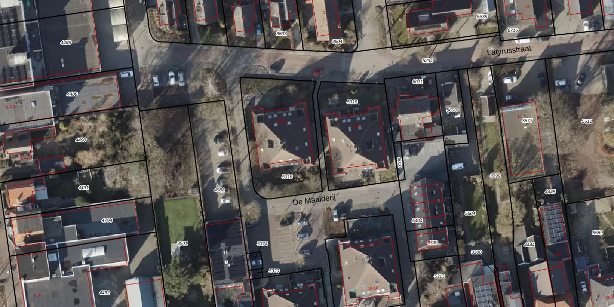 Het perceel waarop De Maalderij 28 staat heeft een oppervlakte van 855 m². Dit is een groot perceel. De perceeloppervlakte wordt geregistreerd door het Kadaster. Gedetailleerde informatie over de maten van dit perceel kunt u vinden in het rapport Kadastrale kaart met maatvoering van De Maalderij 28.
