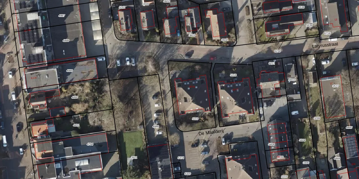 Het perceel waarop De Maalderij 34 staat heeft een oppervlakte van 855 m². Dit is een groot perceel. De perceeloppervlakte wordt geregistreerd door het Kadaster. Gedetailleerde informatie over de maten van dit perceel kunt u vinden in het rapport Kadastrale kaart met maatvoering van De Maalderij 34.