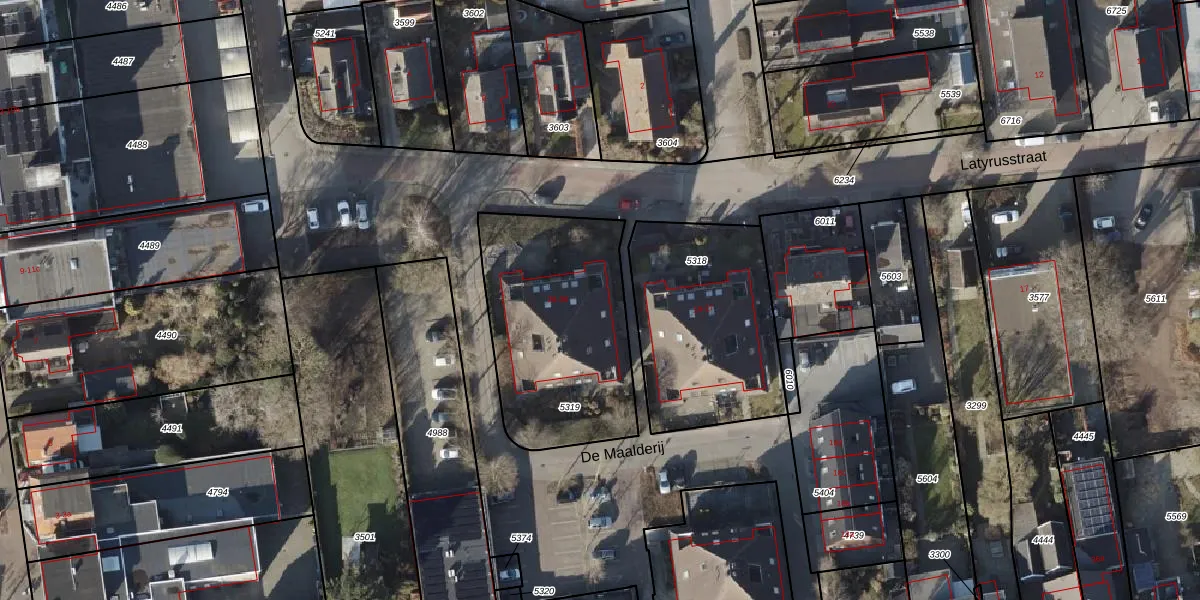 Het perceel waarop De Maalderij 35 staat heeft een oppervlakte van 855 m². Dit is een groot perceel. De perceeloppervlakte wordt geregistreerd door het Kadaster. Gedetailleerde informatie over de maten van dit perceel kunt u vinden in het rapport Kadastrale kaart met maatvoering van De Maalderij 35.