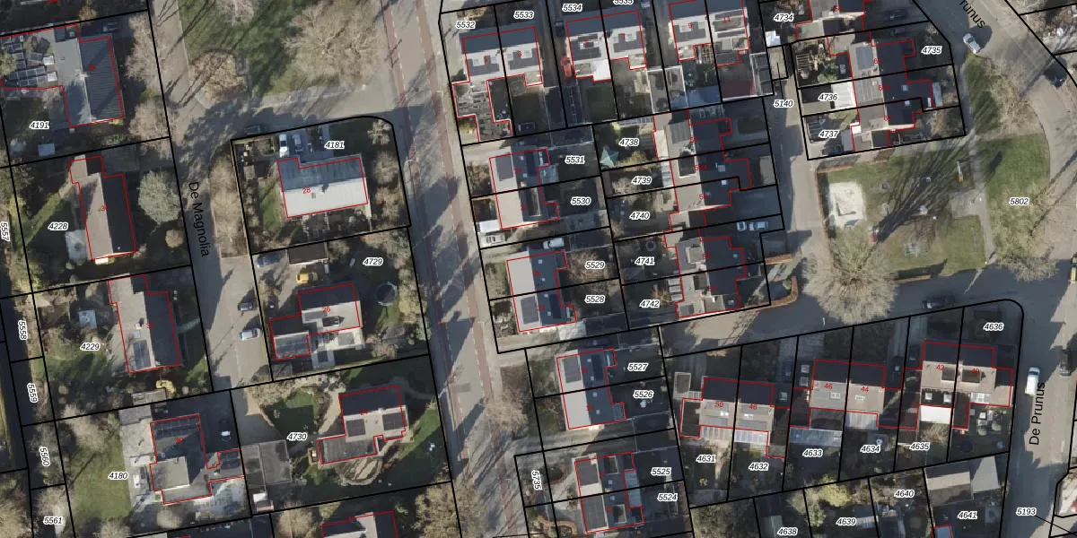 Het perceel waarop De Magnolia 25 staat heeft een oppervlakte van 240 m². Dit is een middelgroot perceel. De perceeloppervlakte wordt geregistreerd door het Kadaster. Gedetailleerde informatie over de maten van dit perceel kunt u vinden in het rapport Kadastrale kaart met maatvoering van De Magnolia 25.