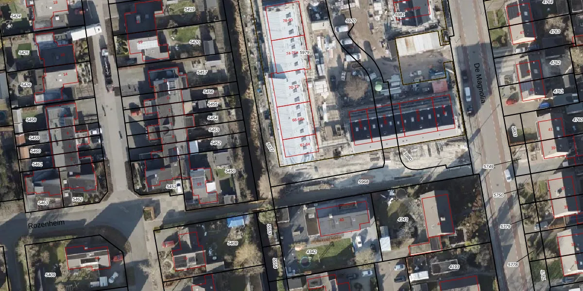 Het perceel waarop De Magnolia 62 staat heeft een oppervlakte van 2468 m². Dit is een zeer groot perceel. De perceeloppervlakte wordt geregistreerd door het Kadaster. Gedetailleerde informatie over de maten van dit perceel kunt u vinden in het rapport Kadastrale kaart met maatvoering van De Magnolia 62.