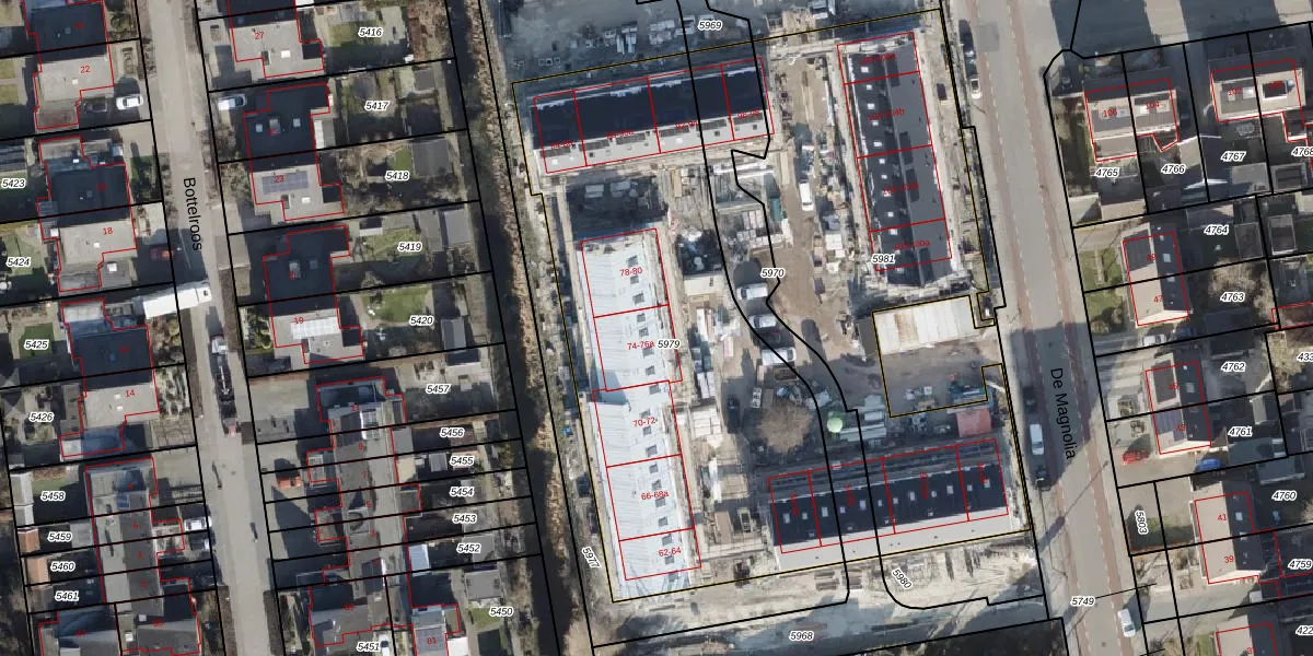 Het perceel waarop De Magnolia 76 staat heeft een oppervlakte van 2468 m². Dit is een zeer groot perceel. De perceeloppervlakte wordt geregistreerd door het Kadaster. Gedetailleerde informatie over de maten van dit perceel kunt u vinden in het rapport Kadastrale kaart met maatvoering van De Magnolia 76.