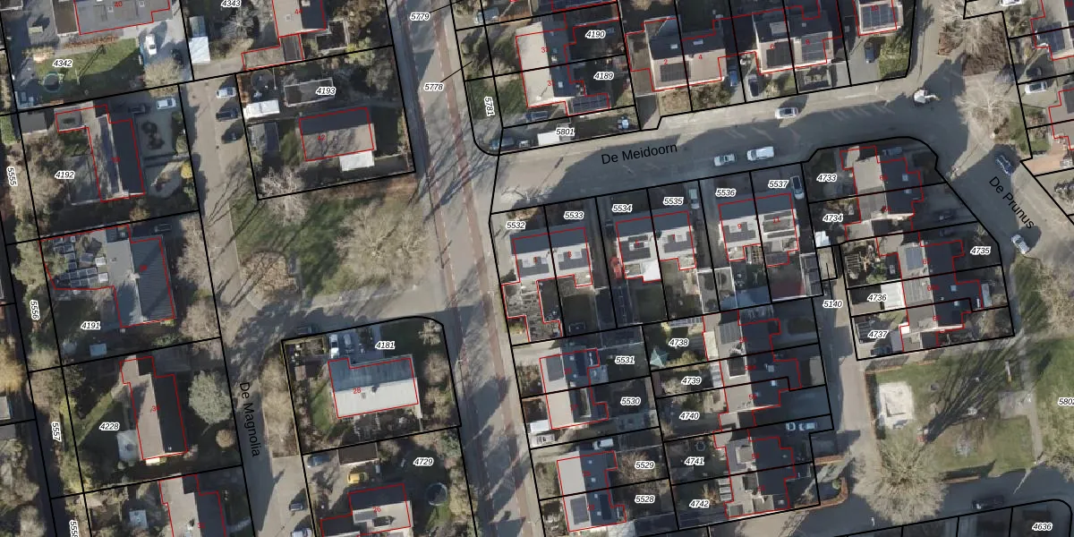 Het perceel waarop De Meidoorn 1 staat heeft een oppervlakte van 263 m². Dit is een middelgroot perceel. De perceeloppervlakte wordt geregistreerd door het Kadaster. Gedetailleerde informatie over de maten van dit perceel kunt u vinden in het rapport Kadastrale kaart met maatvoering van De Meidoorn 1.