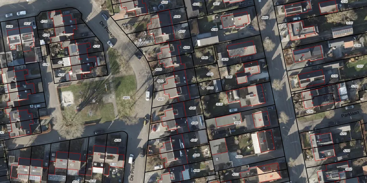 Het perceel waarop De Prunus 63 staat heeft een oppervlakte van 216 m². Dit is een middelgroot perceel. De perceeloppervlakte wordt geregistreerd door het Kadaster. Gedetailleerde informatie over de maten van dit perceel kunt u vinden in het rapport Kadastrale kaart met maatvoering van De Prunus 63.