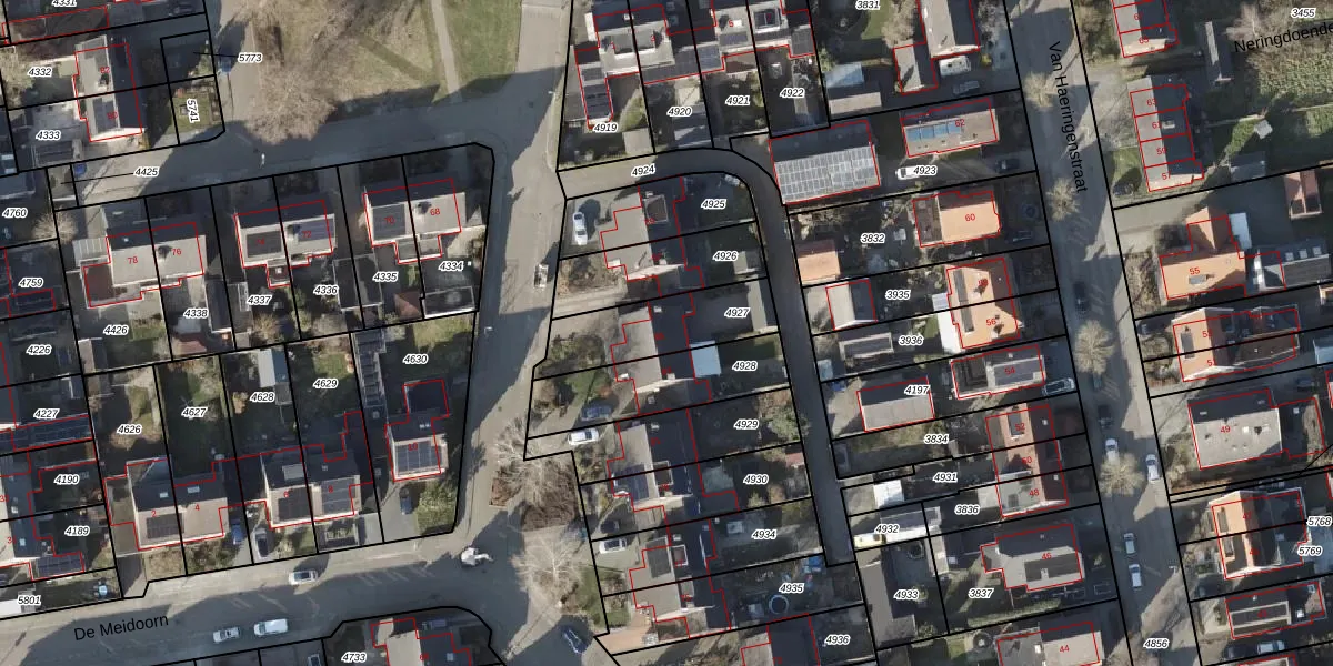 Gebruik de zoekbalk of klik op een perceel voor informatie over de adressen binnen dit perceel.