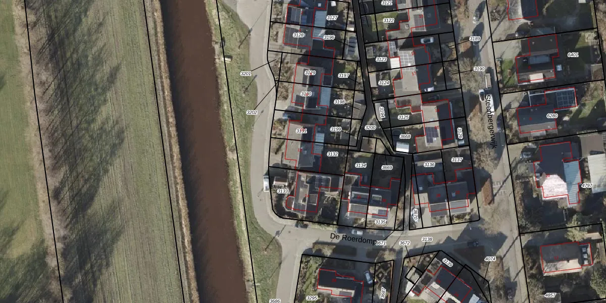 Gebruik de zoekbalk of klik op een perceel voor informatie over de adressen binnen dit perceel.