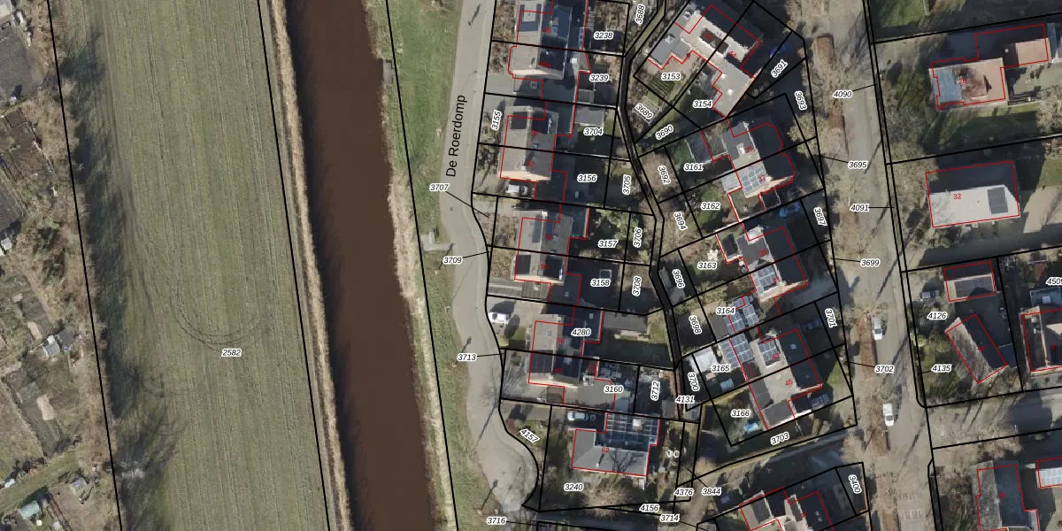 Het perceel waarop De Roerdomp 56 staat heeft een oppervlakte van 239 m². Dit is een middelgroot perceel. De perceeloppervlakte wordt geregistreerd door het Kadaster. Gedetailleerde informatie over de maten van dit perceel kunt u vinden in het rapport Kadastrale kaart met maatvoering van De Roerdomp 56.