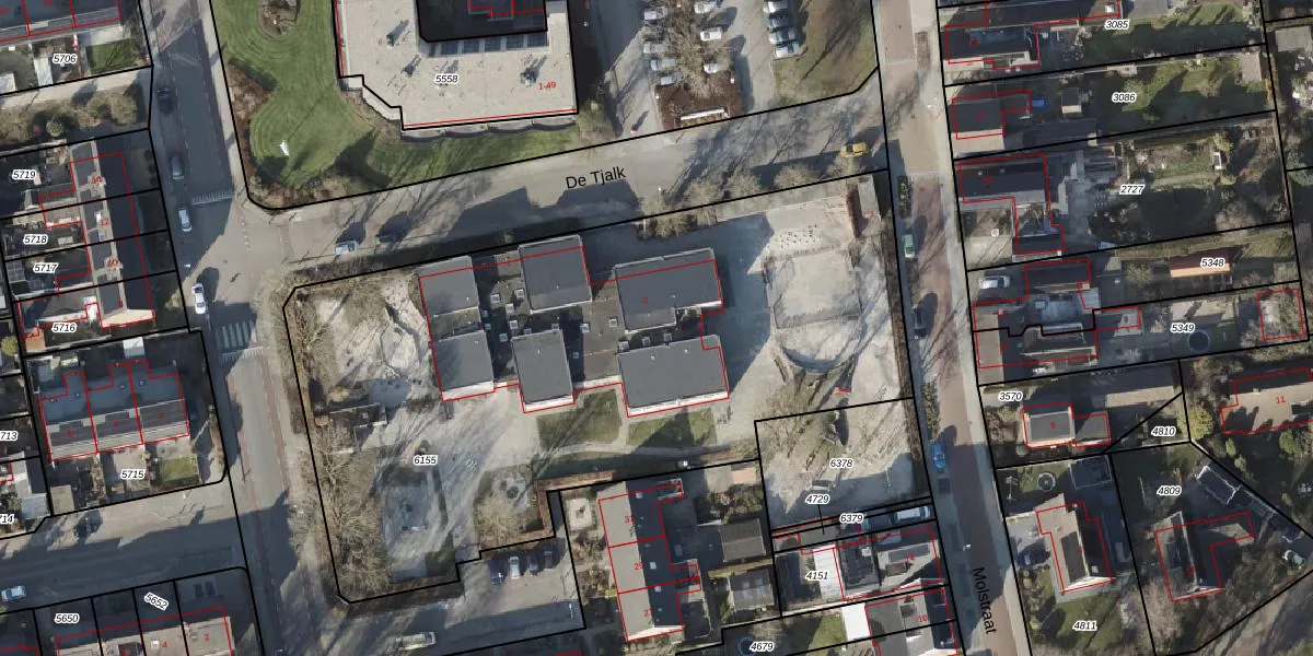 Het perceel waarop De Tjalk 2 staat heeft een oppervlakte van 3780 m². Dit is een zeer groot perceel. De perceeloppervlakte wordt geregistreerd door het Kadaster. Gedetailleerde informatie over de maten van dit perceel kunt u vinden in het rapport Kadastrale kaart met maatvoering van De Tjalk 2.