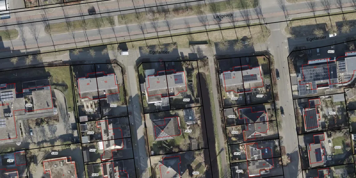 Het perceel waarop Egelantier 55 staat heeft een oppervlakte van 485 m². Dit is een groot perceel. De perceeloppervlakte wordt geregistreerd door het Kadaster. Gedetailleerde informatie over de maten van dit perceel kunt u vinden in het rapport Kadastrale kaart met maatvoering van Egelantier 55.