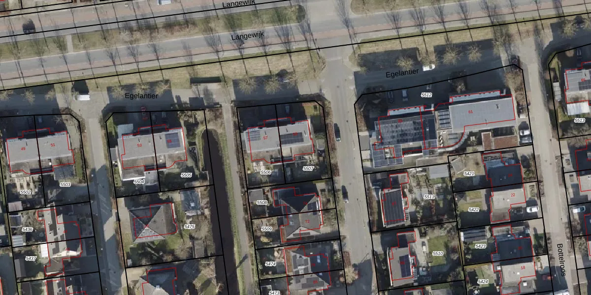 Het perceel waarop Egelantier 59 staat heeft een oppervlakte van 425 m². Dit is een groot perceel. De perceeloppervlakte wordt geregistreerd door het Kadaster. Gedetailleerde informatie over de maten van dit perceel kunt u vinden in het rapport Kadastrale kaart met maatvoering van Egelantier 59.