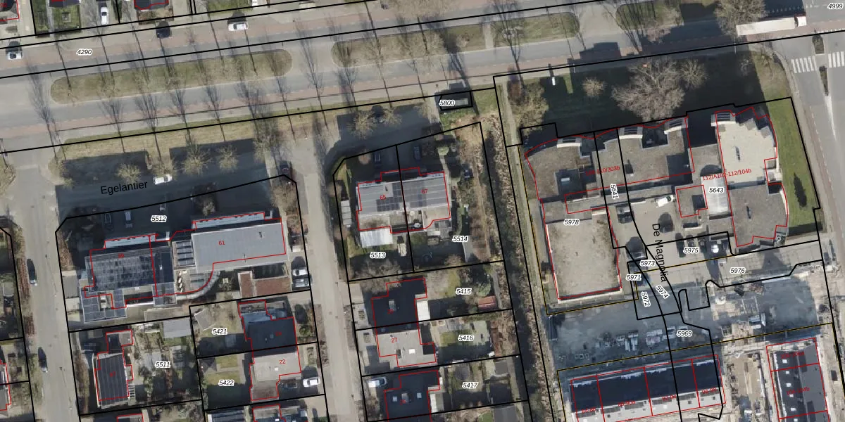 Het perceel waarop Egelantier 67 staat heeft een oppervlakte van 667 m². Dit is een groot perceel. De perceeloppervlakte wordt geregistreerd door het Kadaster. Gedetailleerde informatie over de maten van dit perceel kunt u vinden in het rapport Kadastrale kaart met maatvoering van Egelantier 67.