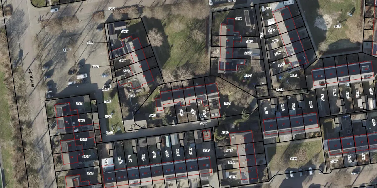 Gebruik de zoekbalk of klik op een perceel voor informatie over de adressen binnen dit perceel.