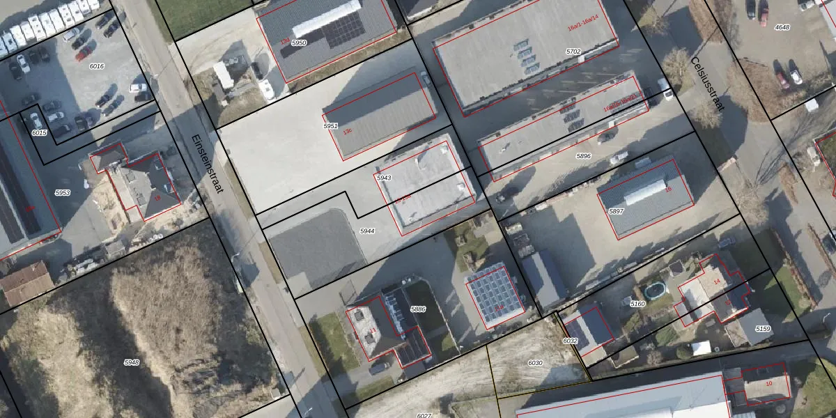 Gebruik de zoekbalk of klik op een perceel voor informatie over de adressen binnen dit perceel.