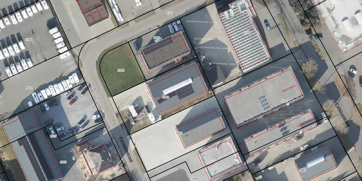 Het perceel waarop Einsteinstraat 13-d staat heeft een oppervlakte van 1208 m². Dit is een zeer groot perceel. De perceeloppervlakte wordt geregistreerd door het Kadaster. Gedetailleerde informatie over de maten van dit perceel kunt u vinden in het rapport Kadastrale kaart met maatvoering van Einsteinstraat 13-d.