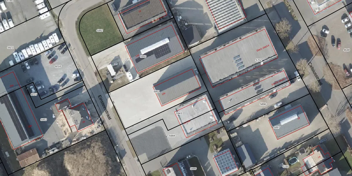 Het perceel waarop Einsteinstraat 13-c staat heeft een oppervlakte van 1180 m². Dit is een zeer groot perceel. De perceeloppervlakte wordt geregistreerd door het Kadaster. Gedetailleerde informatie over de maten van dit perceel kunt u vinden in het rapport Kadastrale kaart met maatvoering van Einsteinstraat 13-c.