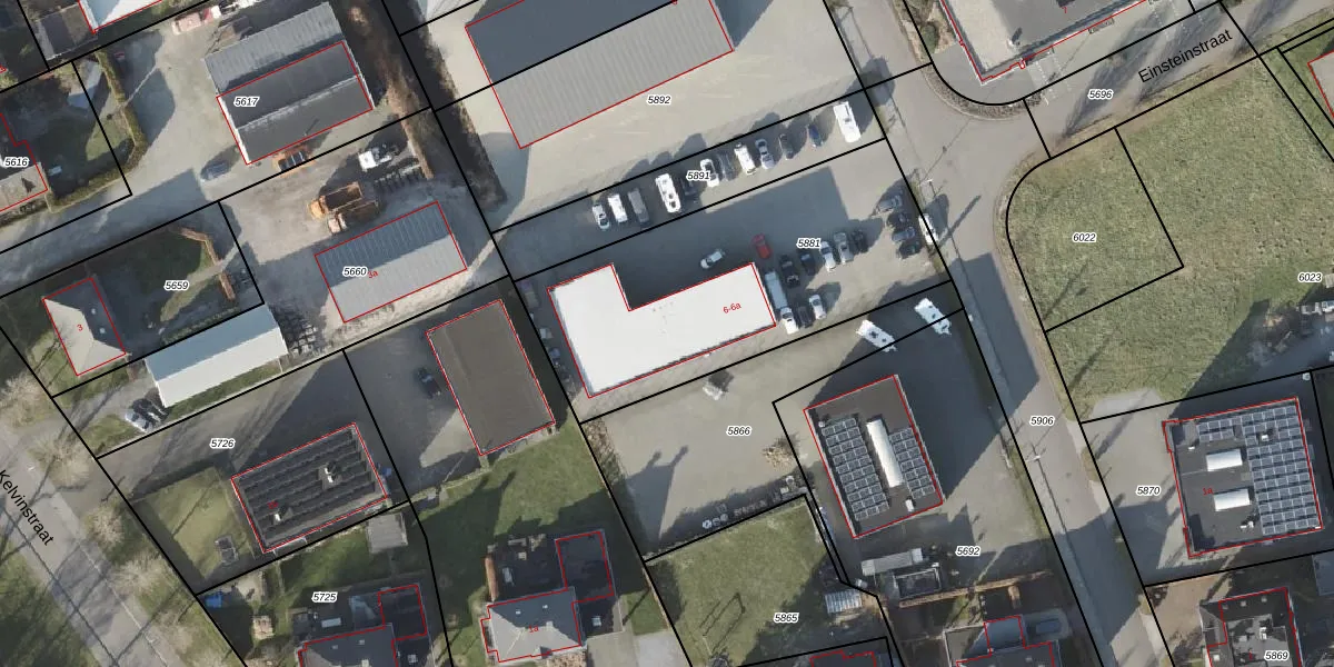 Einsteinstraat 6 is gelegen op kadastraal perceel AVE00L5881. Deze kadastrale aanduiding is uniek en wordt gebruikt door het Kadaster om eigendomsrechten en andere zakelijke rechten vast te leggen. Het perceel maakt onderdeel uit van de kadastrale gemeente Avereest.