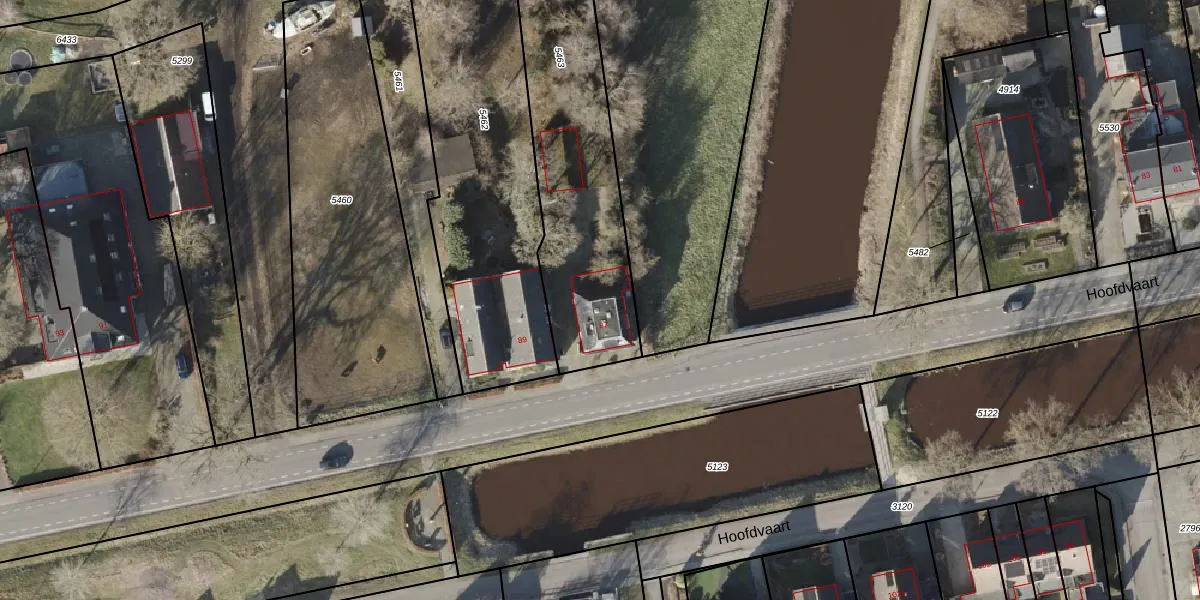 Het perceel waarop Hoofdvaart 87 staat heeft een oppervlakte van 996 m². Dit is een groot perceel. De perceeloppervlakte wordt geregistreerd door het Kadaster. Gedetailleerde informatie over de maten van dit perceel kunt u vinden in het rapport Kadastrale kaart met maatvoering van Hoofdvaart 87.