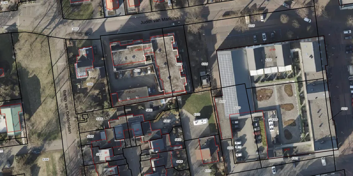 Judith van Marlelaan 2-A105 is gelegen op kadastraal perceel AVE00H4114. Deze kadastrale aanduiding is uniek en wordt gebruikt door het Kadaster om eigendomsrechten en andere zakelijke rechten vast te leggen. Het perceel maakt onderdeel uit van de kadastrale gemeente Avereest.