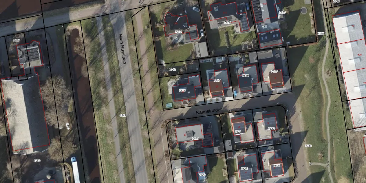 Het perceel waarop Kaapstander 15 staat heeft een oppervlakte van 414 m². Dit is een groot perceel. De perceeloppervlakte wordt geregistreerd door het Kadaster. Gedetailleerde informatie over de maten van dit perceel kunt u vinden in het rapport Kadastrale kaart met maatvoering van Kaapstander 15.