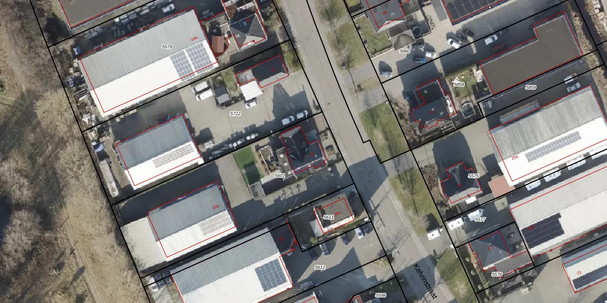 Het perceel waarop Kelvinstraat 20 staat heeft een oppervlakte van 1992 m². Dit is een zeer groot perceel. De perceeloppervlakte wordt geregistreerd door het Kadaster. Gedetailleerde informatie over de maten van dit perceel kunt u vinden in het rapport Kadastrale kaart met maatvoering van Kelvinstraat 20.