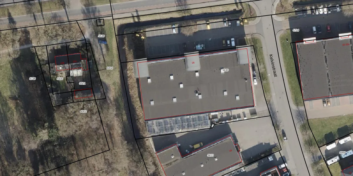 Het perceel waarop Kelvinstraat 28 staat heeft een oppervlakte van 3298 m². Dit is een zeer groot perceel. De perceeloppervlakte wordt geregistreerd door het Kadaster. Gedetailleerde informatie over de maten van dit perceel kunt u vinden in het rapport Kadastrale kaart met maatvoering van Kelvinstraat 28.
