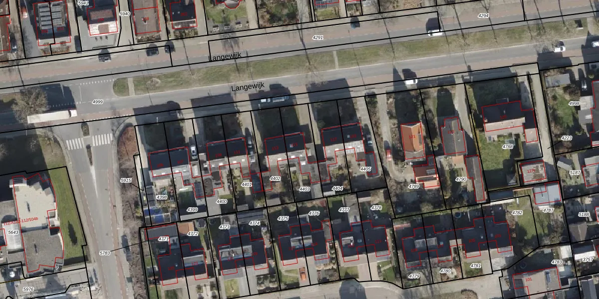 Het perceel waarop Langewijk 115 staat heeft een oppervlakte van 313 m². Dit is een groot perceel. De perceeloppervlakte wordt geregistreerd door het Kadaster. Gedetailleerde informatie over de maten van dit perceel kunt u vinden in het rapport Kadastrale kaart met maatvoering van Langewijk 115.