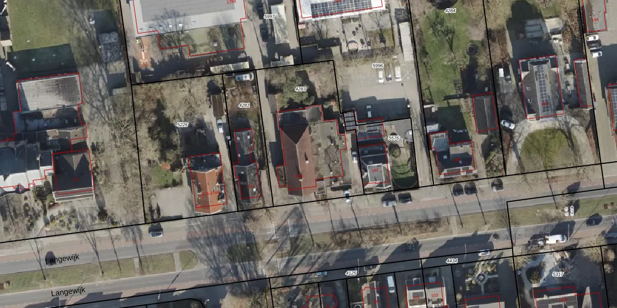 Het perceel waarop Langewijk 180 staat heeft een oppervlakte van 1245 m². Dit is een zeer groot perceel. De perceeloppervlakte wordt geregistreerd door het Kadaster. Gedetailleerde informatie over de maten van dit perceel kunt u vinden in het rapport Kadastrale kaart met maatvoering van Langewijk 180.