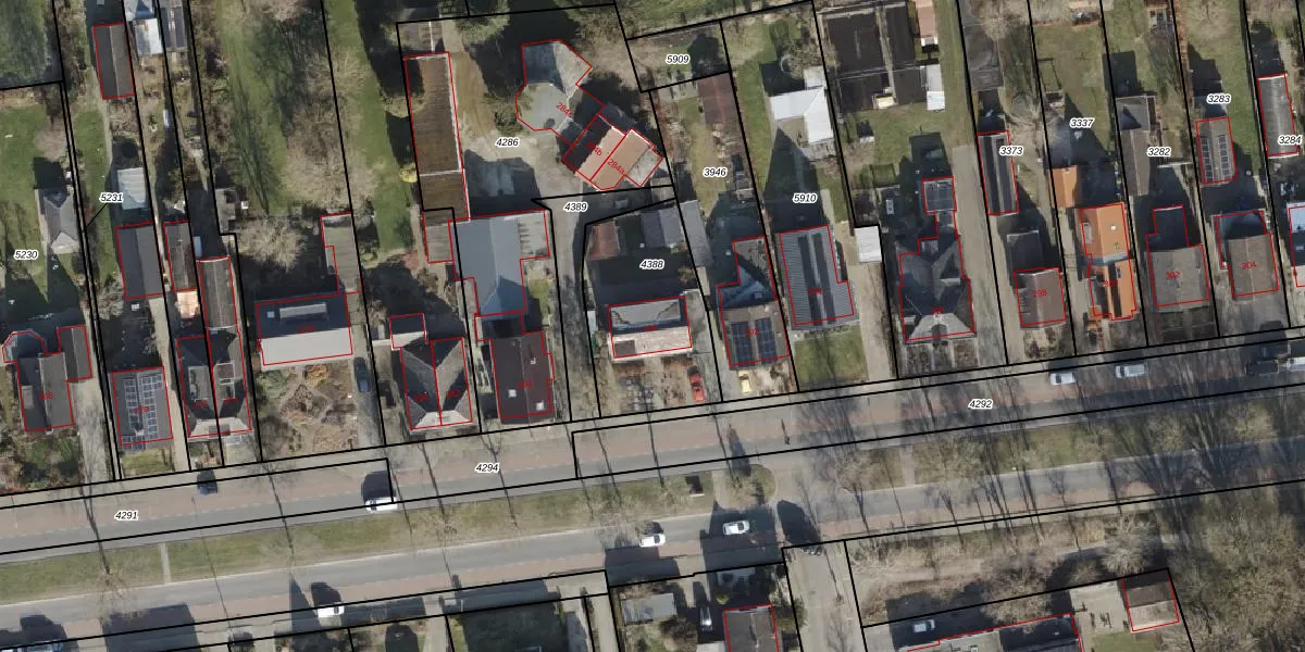 Gebruik de zoekbalk of klik op een perceel voor informatie over de adressen binnen dit perceel.